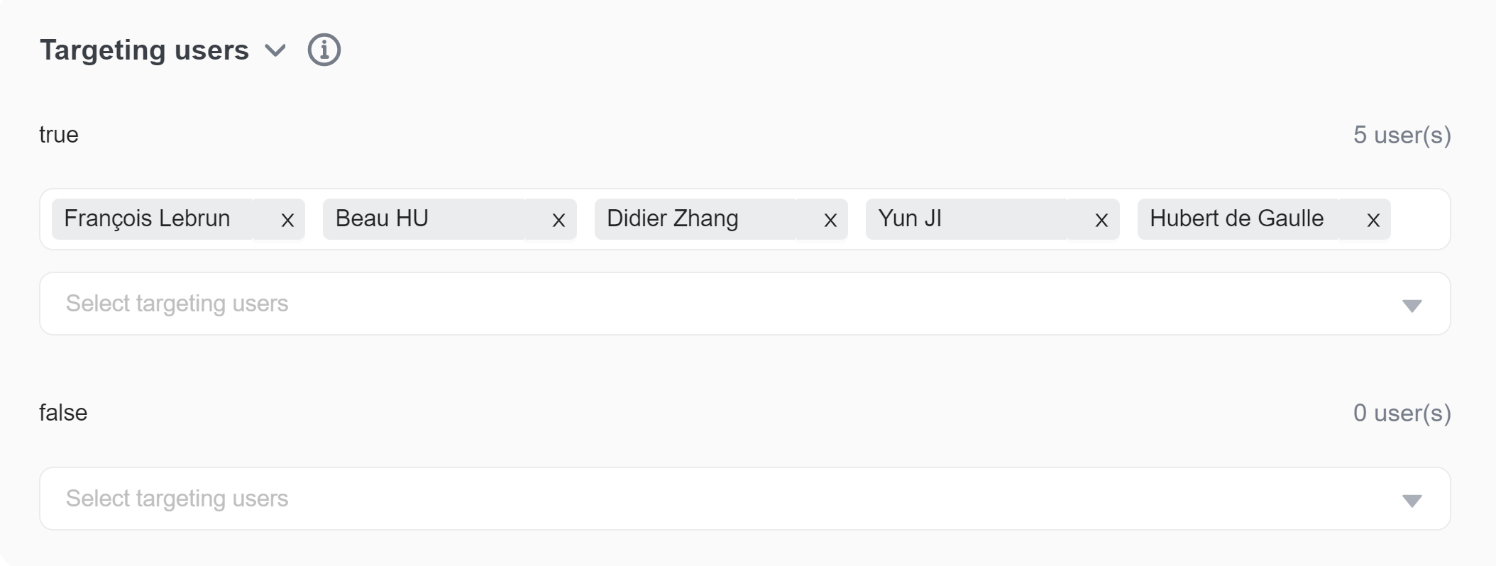 You can remove a user from a flag's targeting list by clicking the user's name. To do this:
