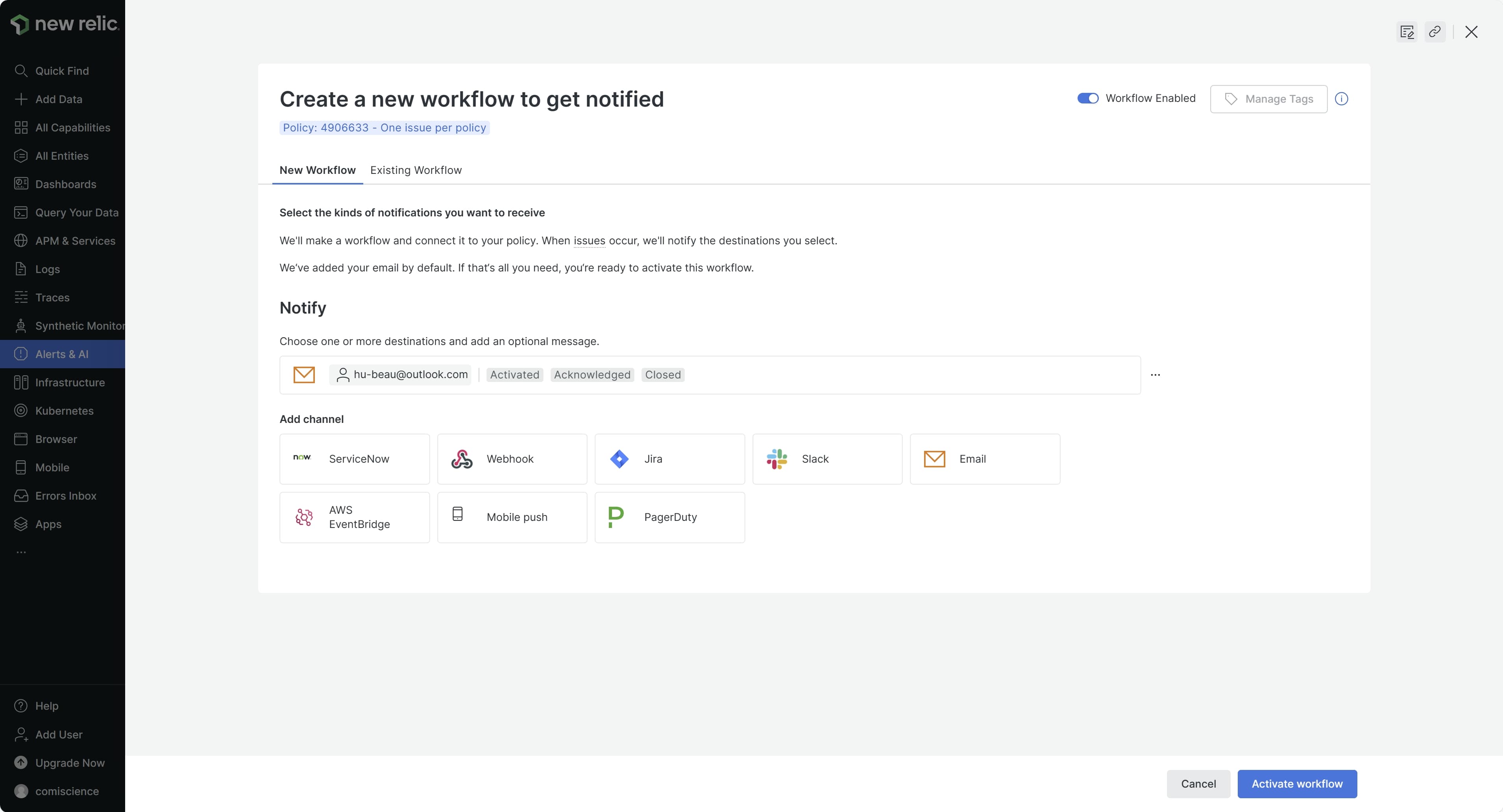 Using the New Relic One events integration